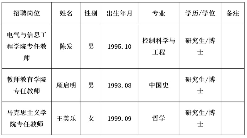 根据《2026年衢州学院高层次人才招聘公告》,经报名、资格审查、面试面谈、考核体检等程序,现确定以下人员为我校拟聘用人员并公示如下: