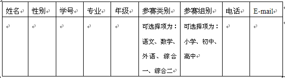 本次比赛仅限于师范类学生,请有意参赛的学生到各系教学秘书处报名。各师范类系于2010年6月11日上午11:00前将学生名单报到教育系。