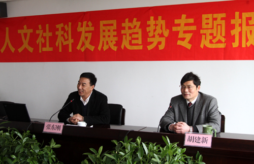 2月26日下午,教育部社会科学司副司长张东刚应邀为我校人文社科教师作了人文社科发展趋势专题报告,党委书记胡建新主持报告会。