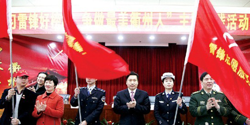 3月4日上午,衢州市“学习雷锋好榜样,争做最美衢州人”主题实践活动正式启动,校团委负责人代表我校与其他五支学雷锋志愿服务队代表一同在仪式上接受市领导的授旗。