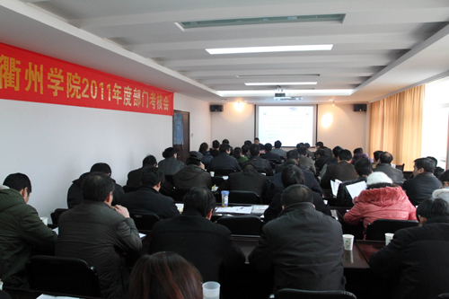 全校27个学院、部门(单位)负责人代表本单位用PPT的形式就2011年工作总结及2012年工作思路进行了汇报,在此基础上,与会人员对各单位工作情况进行了无记名打分。