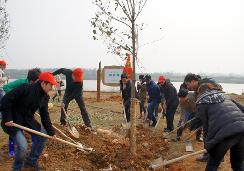 3月12日下午,衢州市启动先锋林、共青林、巾帼林基地建设。学校组织青年志愿者来到市区信安湖徐家坞参加“共青林”义务植树活动,为衢城增添一抹新绿。