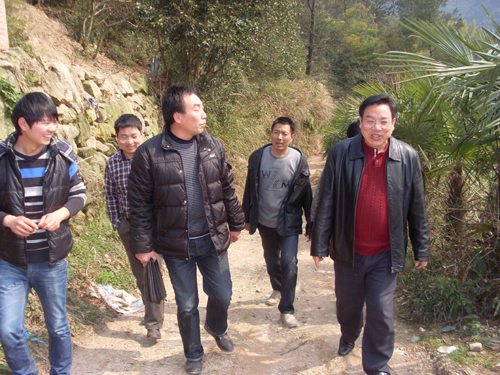 根据衢州市委、市政府提出的“进千村走万户”专项行动部署要求,3月14日上午,副校长姚宏昌带领办公室、组织部相关人员,赴衢江区上方镇新京村姐妹山村自然村开展走访调研,受到了村两委的热烈欢迎。 党支部书记、村主任陪同调研组一行对姐妹山村自然村的山形地貌进行了实地察看,介绍了本村住户情况、主要经济收入、支柱产业等基本情况。 姚宏昌表示,学校非常重视市委市政府提出的“进千村走万户”专项行动,衢州学院作为衢州市唯一的一所本科院校,将充分发挥高校知识分子相对集中的优势,为姐妹山村自然村的经济发展、村容村貌的改善等献计献策,为发展现代农业、培育新型农民、打造生态家园,加快推进美丽乡村建设作出积极贡献。(组织部 郑艳)