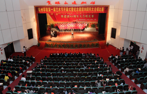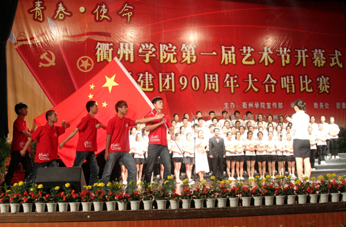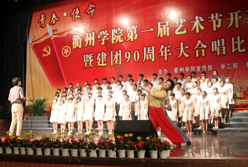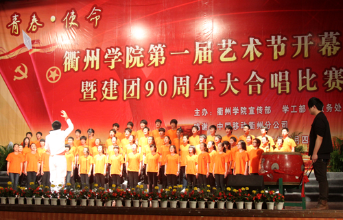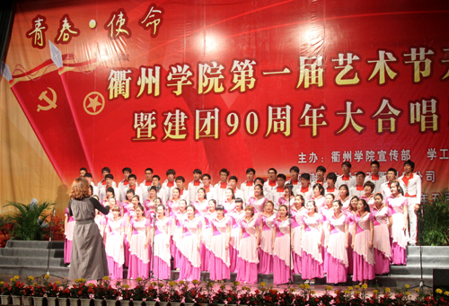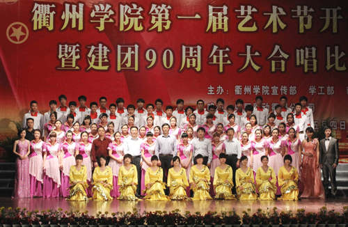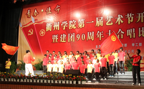 为进一步丰富校园文化生活,推进校园文化建设,促进大学生全面发展,在中国共产主义青年团成立90周年之际,5月4日下午,我校在大会堂隆重举行以“青春・使命”为主题的第一届文化艺术节开幕式暨庆祝建团90周年大合唱比赛。校党委书记胡建新,校长胡伟,党委副书记赵祖地,副校长叶碧、姚宏昌,相关部门负责人,各学院党政负责人及师生代表出席观看。衢州市委宣传部文化处处长周宏波、团市委学校部部长冯晓蓉到场观看了比赛并担任评委。 赵祖地在开幕式上致辞。他在讲话中指出,九十多年前的“五・四”运动开启了中国新民主主义革命的序幕,今天,“五・四”火炬已经传到了同学们手中,希望同学们能秉承中华民族优良传统,用知识与汗水、激情与豪迈,去开拓、去创造,去迎接这个机遇与挑战并存的时代。同时,艺术节是精神文明建设的亮丽风景线,是学校实施美育教育的殿堂,希望同学们积极参与艺术节,让整个校园变成放飞艺术和施展才华的舞台;希望同学们能够珍惜这一展示青春风采的机会,在活动中提升素养。 大合唱比赛在机械工程学院一曲慷慨激昂的《团结就是力量》中拉开帷幕,《中国,中国,鲜红的太阳永不落》、《游击队之歌》……来自七个二级学院的代表队及校大学生合唱团的600多名学生用豪迈的歌声表达了对祖国、对党的热爱。一首首歌曲引燃了全场观众们的激情,整场比赛精彩纷呈,高潮迭起,为在场师生献上了一场视听盛宴。 大学生合唱团 指挥:周娟娟教授 本次大合唱比赛是我校第一届艺术节系列活动之一。接下来,我校还将举办“金话筒”主持人大赛、交响乐演出专场、中华颂经典诗文朗诵比赛、书法大赛、绘画比赛、摄影大赛、微视频大赛等一系列文化艺术类活动,并将于5月底举行汇报演出暨表彰大会。 机械工程学院合唱队 外国语学院合唱队 建筑工程学院合唱队 经贸管理学院合唱队 化材学院合唱队 电气信息学院合唱队 教师教育学院合唱队 (文/周霄佳 摄/李 岚、陈 凯)