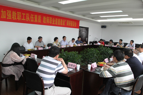 调研组随后在我校召开了由学校教代会、工会两委委员,分工会委员,教师代表以及宣传部、人事处、教务处等相关职能部门负责人参加的“加强教职工队伍素质、教师职业道德建设”座谈会。会议气氛热烈,与会人员畅所欲言,围绕学校的教育改革发展、青年教师成长成才、教职工幸福指数、劳动人事关系和教职工最直接、最迫切的利益诉求等内容,畅谈了自己的想法,提出了积极的、具有建设性意义的意见与建议。调研组认真倾听教职工的发言,仔细询问了相关具体情况,并表示会将广大教职员工反映的带有普遍共性问题带回去,形成调研报告,向有关政府部门反映,以使争取在政策和制度层面上对新建本科院校予以倾斜,进一步助推新建本科院校健康、快速发展。(校工会)
