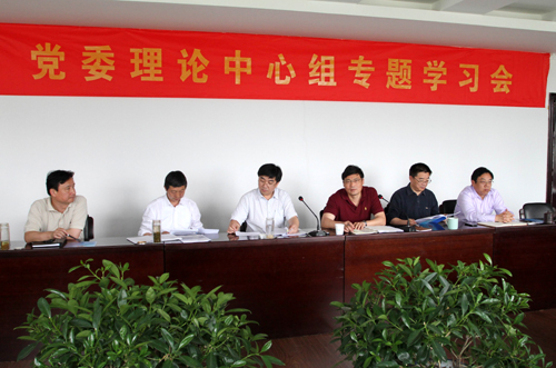 为认真学习贯彻教育部《关于全面提高高等教育质量的若干意见》(教高〔2012〕4号)文件精神,切实加强我校教育教学管理,全面提升我校人才培养质量,5月15日下午,学校召开党委理论学习中心组学习(扩大)会议,校领导胡建新、胡伟、赵祖地、叶碧、潘海天、姚宏昌,各学院(部、中心)党政负责人、分管教学副院长以及各部门负责人出席会议。校党委书记胡建新主持专题学习会。