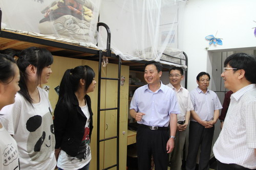 汪晓村深入学生公寓,仔细查看寝室卫生、生活设施和安全保障情况,了解学生的学习和生活情况。在1号学生公寓,汪晓村还特地与河南、山东等外省学生交谈,仔细询问他们吃住是否习惯,对南方的气候能不能适应。汪晓村鼓励同学们在学好专业知识的同时,要更多地涉猎复合型领域,利用业余时间多学习经济、管理等方面的知识,努力使自己成为专业精通的复合型人才。汪晓村对我校学生公寓的卫生环境和安全管理工作表示满意。