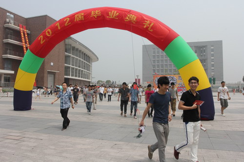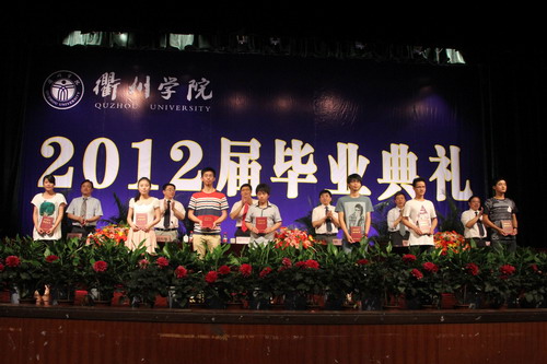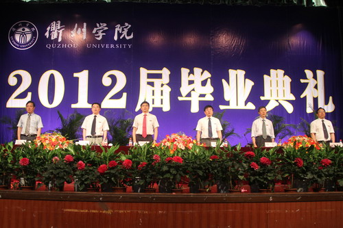 6月13日,我校在大会堂隆重举行2012届毕业典礼,欢送1753名毕业生顺利完成学业走向社会。学校党委书记胡建新,党委副书记、校长胡伟,党委副书记、纪委书记赵祖地,党委委员、副校长叶碧,副校长潘海天,党委委员、副校长姚宏昌在主席台就坐。学校各二级学院领导、职能部门负责人、教师代表及全体2012届毕业生参加了毕业典礼,赵祖地主持典礼。 毕业典礼这一天,孔子广场上早早地竖起了一面巨大的笑脸墙,笑脸墙上的头像是从三年前2009级的学生入校时开始收集的。这些笑脸组成了一个心形和“毕业了”三个大字,记录了三年来同学们在学校学习、生活的点点滴滴,传达了母校对毕业生们的浓浓祝福。 我校2012届毕业典礼在雄壮的国歌声中拉开序幕。胡伟在典礼上宣读省级、校级优秀毕业生名单,叶碧宣读毕业生名单。校领导为53名省级优秀毕业生、297名校级优秀毕业生颁发了荣誉证书,并为全体毕业生颁发毕业证书。 胡建新在毕业典礼上讲话。他深情回顾了2009级学生在衢州学院的三年大学生活。在毕业生们即将离校之际,胡建新向整装待发的全体同学提出了四点殷切希望:一是希望同学们热爱祖国,坚守信念,志存高远。胡建新说,希望大家正视生活中的艰难和波折,永远不要放弃心中的理想和激情,满怀理想,坚守内心,与祖国同命运、与社会同生存、与人民同甘苦。二是希望同学们爱岗敬业,脚踏实地,勤勤恳恳。要珍惜机遇,踏踏实实从本职工作做起,干一行,爱一行,精一行。三是希望同学们与时俱进,勤于学习,勇于实践。同学们要永远保持求知的热情,坚持学习,不断充实自己。四是希望同学们立心力行,谦虚谨慎,宽容大度。要谨记学校“立心力行”的校训,讲诚信,懂包容,有大爱,牢固树立并践行社会主义核心价值观;有自信,不自负,重实践,为生民立命,为事业立功。 毕业生代表夏佰银、叶雨琴,教师代表雷小青、万克勇分别上台发言。 毕业典礼在全体师生齐唱的《毕业歌》歌声中结束。(文/丰爱静 周霄佳 摄/李岚 沈越懿)