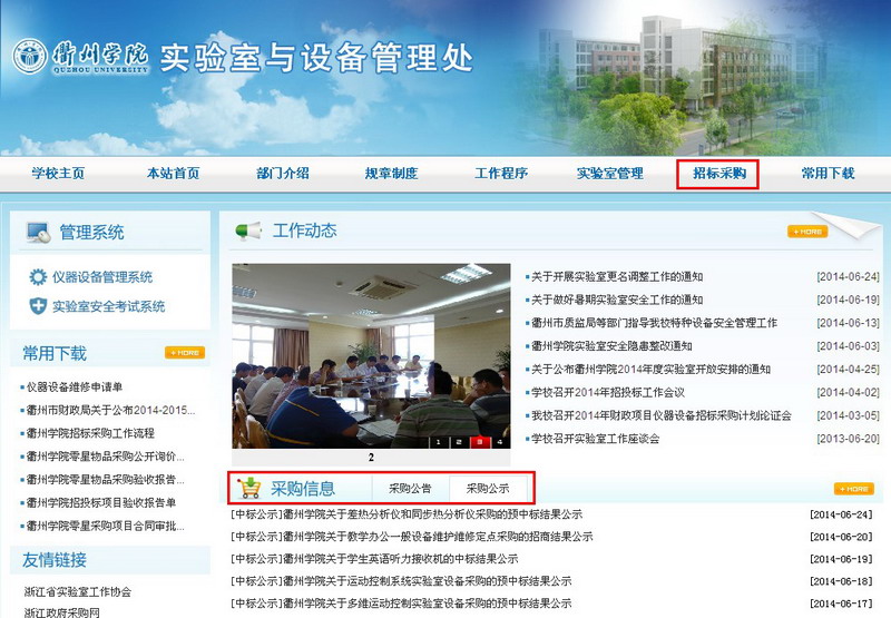 1.网站地址:http://www.qzc.edu.cn/sbc/zbcg/