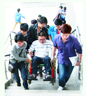 张志源班里有个“护学小分队”,是专门为他成立的。班里16个男生,以寝室为单位,每天轮流扛志源上下课,这么一扛,就扛了四年。“志源就像我们的兄弟,这四年我们都扛到心里去了。”班长周宏伟说,虽然志源从来没有住在男生寝室,但他是每一个寝室的一员。