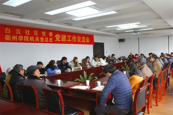 1月29日,虽然学校已放假,但是行政楼3楼2号会议室却热闹非凡,白云街道党工委、白云社区20多名党员应邀来我校,就党建工作与机关总支开展了交流活动。 白云街道的党员们首先参观了机关总支的宣传栏、公开栏,了解了机关总支的情况和特色工作的建设情况。随后社区党员来到会议室与总支成员党支部书记进行了座谈。座谈会上,机关总支负责人介绍了过去一年机关党建的开展情况和2018年的工作思路,感谢白云街道、社区对学校党建工作的支持和帮助,表示新的一年将继续加强与当地街道党委、政府的合作交流,促进机关党建工作再上新台阶。 白云街道党工委负责人介绍了白云街道的党建工作开展情况,同时感谢我校领导对西区剿灭劣五类水的关心、支持,帮助西区顺利打赢了巢灭劣五类水的攻坚战。随后双方就党建工作进行深入交流。这次活动加强了机关总支与街道、社区党委的联谊,拓展了党建视野,促进党建工作再上新台阶。(机关党总支 丰爱静)