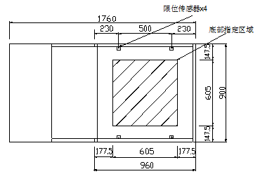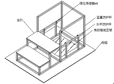 加载系统由加载装置和加载板两部分组成,加载装置具体尺寸如图1所示,加载板的具体尺寸如图2所示。加载装置中水平防护杆上设有4个限位传感器,限位传感器竖直限位,传感器触发平面离地高度为485mm。加载过程中加载板触碰任意一个或几个限位传感器的触发平面时,将触发报警。