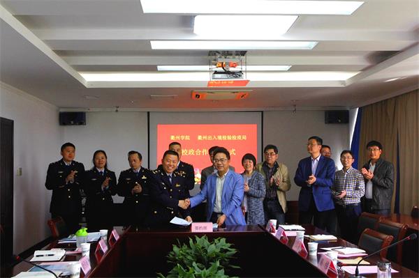 4月9日下午,衢州学院•衢州出入境检验检疫局校政合作签约仪式在三楼二号会议室举行。校长胡伟、副校长李长吉、出入境检验检疫局局长朱杰出席会议,教务处、化学与材料工程学院、经贸管理学院等相关负责人参加会议,会议由李长吉主持。
