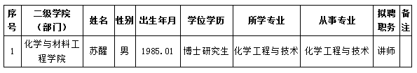 根据《衢州学院专业技术职务评聘办法(二次修订)》(衢院人〔2017〕35号)精神,经部门材料审核,人事处审定,现将拟初定苏醒同志专业技术职务信息公示如下: