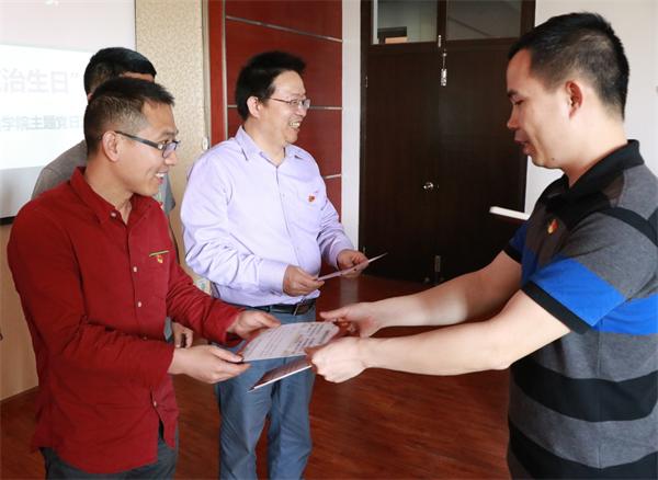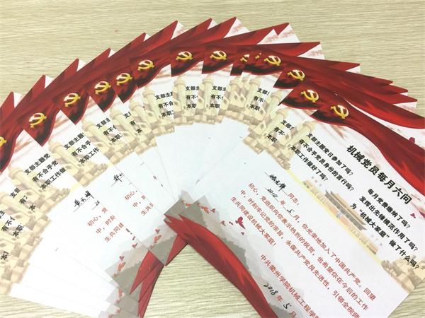 为贯彻全面从严治党要求,进一步加强和改进党员教育管理方式,近日,机械工程学院党总支在各支部组织开展了“回望初心,共过政治生日”主题党日活动。 借“政治生日”提醒“我是谁” 通过对党员信息的再整理,机械工程学院党总支建立了“政治生日”一本账,认真核对每一名党员的入党时间,以通过其为预备党员之日为党员的“政治生日”,要求各支部结合每月的主题党日活动,为在同一月份入党的党员过“政治生日”。活动以“六个一”为主要形式开展,即:总支建一本“政治生日”台帐、发一条“入党日”祝福短信、送一张“回望初心”卡片,支部赠一本经典名著、重温一次入党誓词、开展一次谈心谈话等,借“政治生日”提醒每位党员 “我是谁”,找到归属感,自觉把党员意识融入到政治意识、大局意识、核心意识、看齐意识中。 用“每月六问”强化“怎么做” 在为每一位过“政治生日”的党员准备的卡片上,印制着“机械党员每月六问”,即:支部主题党日活动参加了吗?每月党费交纳了吗?有不合乎党员身份的言行吗?发挥出先锋模范作用了吗?本职工作做好了吗?为“机械大家庭”做了什么吗?通过这样的形式,机械工程学院党总支引导教育每位党员要牢记党的宗旨,自觉加强党性修养,把增强政治意识与推进学院中心工作、重点工作结合起来,把提升政治素养与教书育人的本职工作结合起来。在刚刚组织的5月份的“政治生日”活动中,学院党总支要求每位党员立足岗位、勇于担当,全力以赴做好浙江省第十五届“慧谷杯”大学生机械设计竞赛中学院承担的各项工作。 机械工程学院党总支希望通过开展此次活动,不断强化“一切工作到支部”的鲜明导向,不断创新党员的教育方式,不断丰富“主题党日”的活动内涵和载体,从而促进广大党员不忘初心,更好地在学院事业发展中发挥出先锋模范作用。(机械工程学院 徐文君)