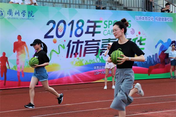“毛毛虫”也能上跑道?西瓜成了“接力棒”?5月13日下午,衢州学院上演了一场别开生面的体育“嘉年华”,吸引了将近2000名同学前来“围观”。操场上,“抱西瓜”比赛如火如荼地进行着,同学们抱着一个个红瓤多汁的绿皮大西瓜迎面接力,你追我赶好不热闹。“毛毛虫跑”赛场更是精彩热闹,参赛同学们憨态可拘、时不时容易出错的步子引得周围笑声一片。