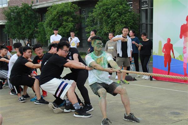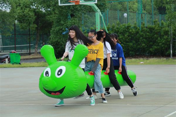 在“毛毛虫”赛场,欢呼声与尖叫声也丝毫不亚于“抱西瓜”。“我觉得光是毛毛虫这个造型就很吸引人,以前从没想过骑在毛毛虫背上还能跑步呢。”比完“毛毛虫”,大一商务英语专业的黄晓翔早已大汗淋漓,“这是一个非常考验我们团队默契的项目,控制大家跑步的频率一致还是挺难的,速度不一样就很容易摔倒。我们组就通过喊口号的方法来解决这个问题。比完赛,我们的默契值也‘噌噌’上涨了。”