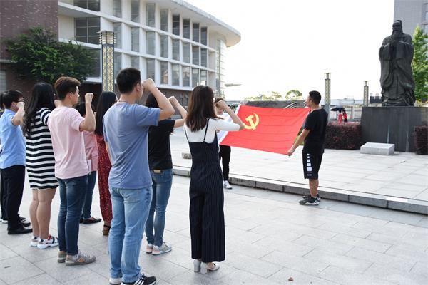 “子曰,学而时习之,不亦说乎……”随着高山流水般的背景音乐缓缓流出,衢州学院辅仁园前闪出了五位穿着古装的翩翩才子的身影,他们正拿着竹简高声地朗诵经典。另一边,篮球赛场上爆发出了一阵阵欢呼声,曦光苑的姑娘们“不甘示弱”,一支青春活力的《学习操》引爆了中场休息的高潮……5月24日傍晚,学生公寓党支部开展了一次别出心裁、生动活泼的主题党日活动。