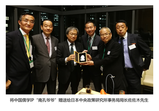 2018年,中国动漫访日考察团考察日本动漫产业,将代表中国儒学的“南孔爷爷”衍生品赠送给日本中央政策研究所事务局局长佐佐木先生。很快,南孔爷爷成功引起关注,很多人在搜索南孔爷爷是谁?最后发现,其实目的是推广衢州的南孔文化,是一个别具创意中国传统文化的一带一路,并且见证了中日关系的健康发展。