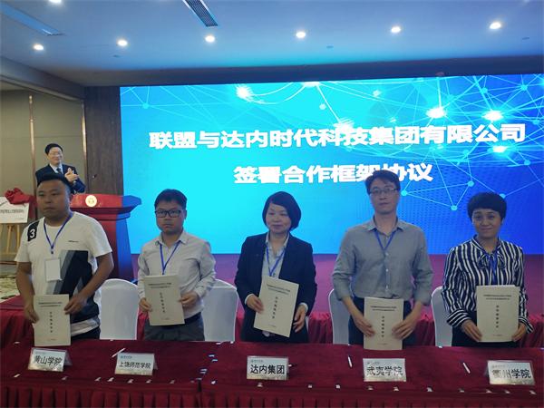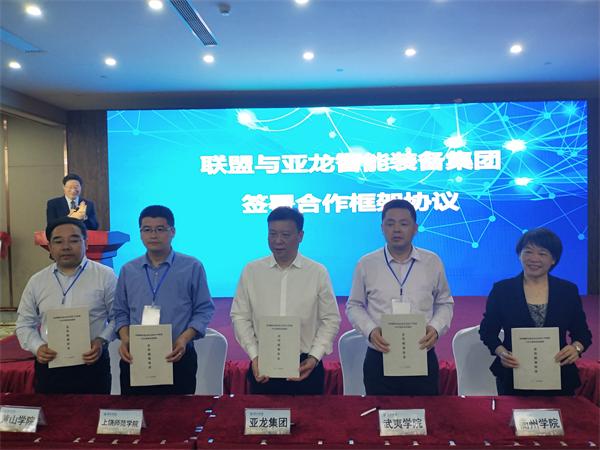 会上,四省边际数字经济专业人才培养协同中心成立,王良春与校党委书记杨玲为中心共同揭牌。亚龙智能装备集团股份有限公司、达内时代科技集团股份公司负责人分别与四省边际应用型大学联盟代表签署了《联盟亚龙教育发展基金管理办法》《联盟与亚龙智能装备集团合作框架协议》《联盟与达内时代科技集团有限公司合作框架协议》。