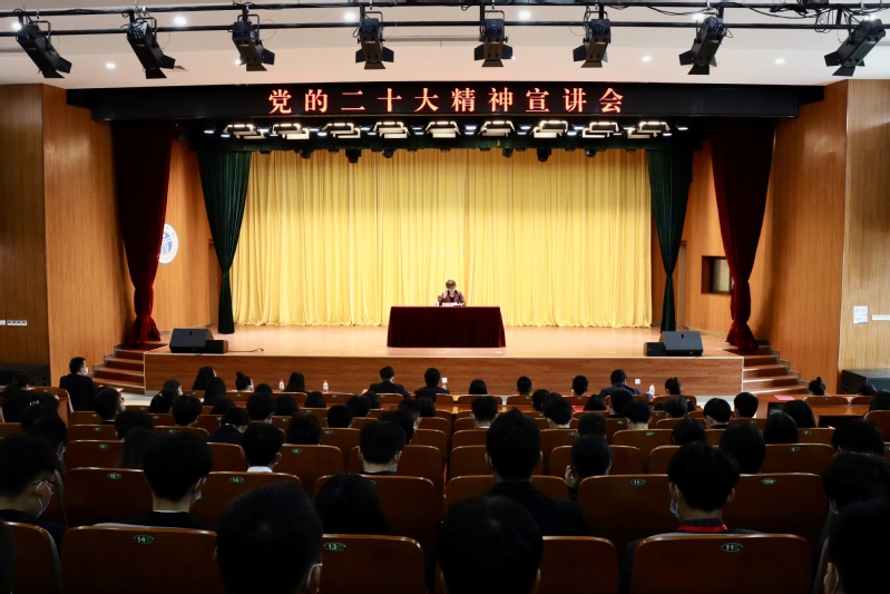 在全校上下学习宣传贯彻党的二十大精神之际,11月5日上午,校党委书记杨玲在求是报告厅为学生代表作党的二十大精神宣讲,来自各二级学院的近200名师生聆听了宣讲。