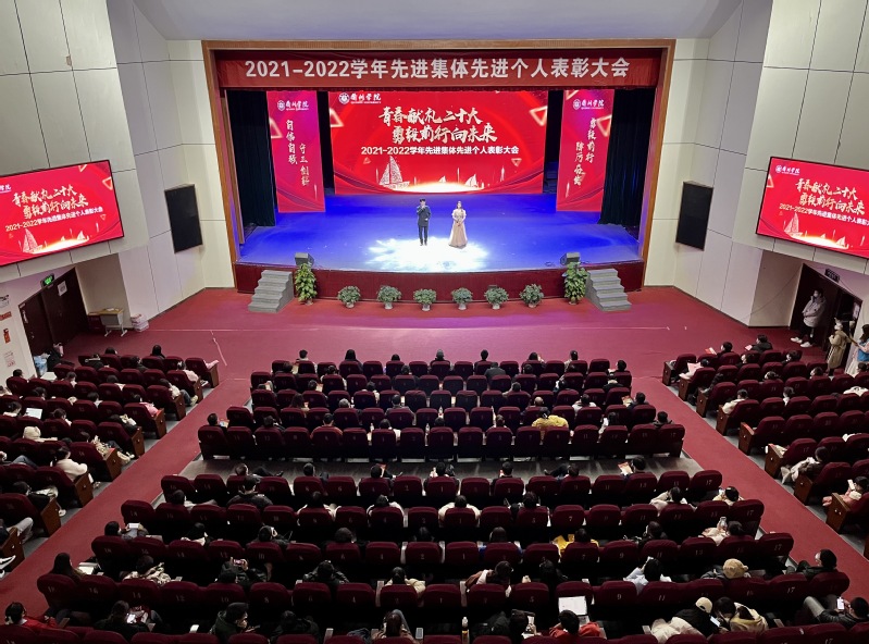 奋进新征程,建功新时代,时代青年正当其时!为深入学习贯彻党的二十大精神,进一步落实立德树人根本任务,全面加强校风、学风建设,充分发挥青年榜样在广大学生中的的引领作用,激励先进、鼓励创新,营造良好的育人氛围,12月9日晚,我校“青春献礼二十大 勇毅前行向未来”2021~2022学年先进集体先进个人表彰大会在大会堂举行。校领导郑友取、杨政、吴耀光、江爱民、郑文山、吾国强、陈烈荣出席表彰大会并为获奖代表颁奖,校长郑友取讲话。相关职能部门负责人、二级学院党政负责人、辅导员、班主任及学生代表参加表彰大会。