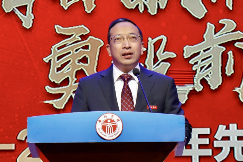 他向广大学生提出三点希望:一要示范引领,脚踏实地当好标杆。“待尽生涯蚕作茧,就衰榜样发缲丝”。受表彰的每一个先进集体、先进个人都是一面旗帜,要珍惜荣誉、戒骄戒躁,脚踏实地发挥“标杆”的示范引领作用。希望更多的衢院优秀学子再接再厉、发扬成绩,争取更大的光荣,用信念和信心、品格和人格影响更多人!二要自信自强,敢想敢为争做标杆。“自信人生二百年,会当水击三千里”。只有自信的人才能焕发光彩,只有自信的人才能毫无畏惧地面对一切困难和挑战。希望更多的衢院学子坚定信念、不懈奋斗,用心用功地把每件平凡的事做好,相信每位同学都有人生出彩的机会,每项平凡的学习和工作都可以创造出不平凡的业绩和贡献。三要胸怀天下,善作善成拉高标杆。“会当凌绝顶,一览众山小”。作为当代青年,要志存高远,潮头观澜,立足时代坐标,心系祖国前途、民族命运,以格局致远人生,在实干中建功立业!希望更多的衢院学子秉承“立心力行”校训,勇于承接时代使命与担当,在投身中国式现代化的伟大征程中贡献更多衢院的青春力量!