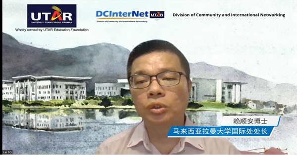 马来西亚拉曼大学国际处处长赖顺安博士致辞,他表示南孔文化体验营是一次非常好的机会,希望大家有所收获,学有所成。