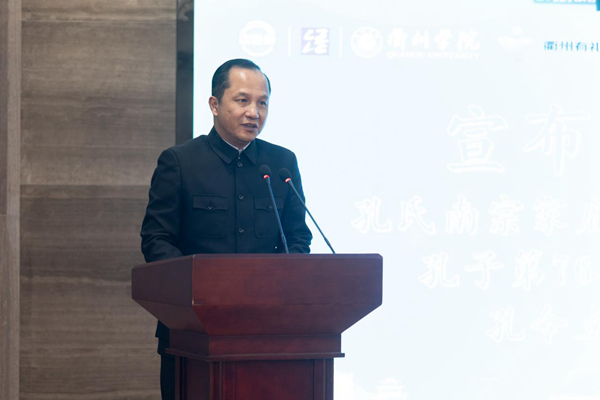 最后,在中外学子代表合作朗诵《汉语为桥 天下一家》后,孔氏南宗家庙管委会主任、孔子第76代嫡长孙孔令立先生宣布“南孔圣地衢州有礼”南孔文化体验营正式开营,并祝愿大家学有所成、学有所得、学有所思。