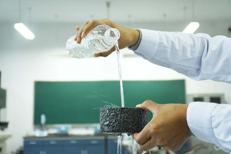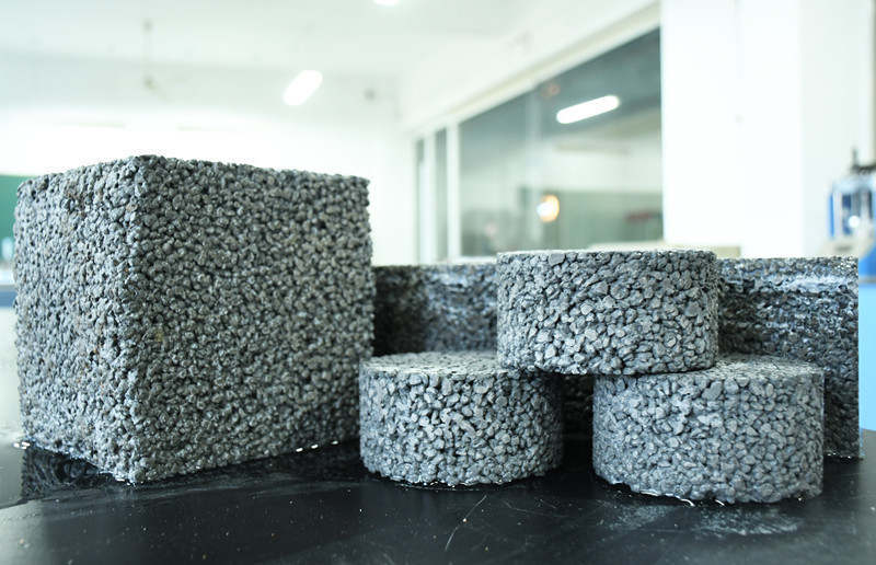 记者了解到,原来,这是由衢州学院海绵城市产学研究中心(以下简称研究中心)新GET的“高强度透水保水混凝土方案”。经过第三方机构检测,透水混凝土试块的透水系数达到惊人的2.27mm/s,是国家标准0.5mm/s的4.5倍,抗压强度达到43MPa,是国家标准中轻载标准20MPa的2倍多。