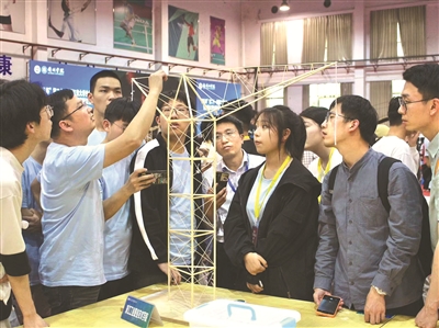 衢州学院党委委员、副校长吾国强表示,学校把学科竞赛作为应用型人才培养的一大抓手,推进“人人进学科竞赛”,提升学生的专业和实践能力,学科竞赛累计获全国三等奖以上奖项570余项,在2018——2022年全国新建本科院校大学生竞赛排行榜中位列第17名。参赛选手衢州学院工程管理专业学生姚楚仪告诉记者,本次比赛是他们心中分量最重的学科竞赛,被誉为“土木皇冠上最璀璨的明珠”。备赛过程中,姚楚仪和同伴一次次打磨、测试、加载,经历了无数模拟练习,终于在这方追逐梦想的舞台上实现了展示自我、提升技能的愿望。