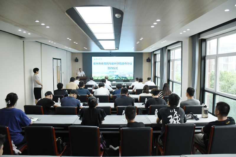 为更好贯彻落实省十八运筹办动员会议精神,推动赛事场馆建设和体育人才队伍培养,6月25日上午,我校与衢州市体育局签订战略合作协议。校党委副书记、校长郑友取,市体育局党组书记、局长吴剑波出席签约仪式,市体育局及我校相关处室负责人参加会议。