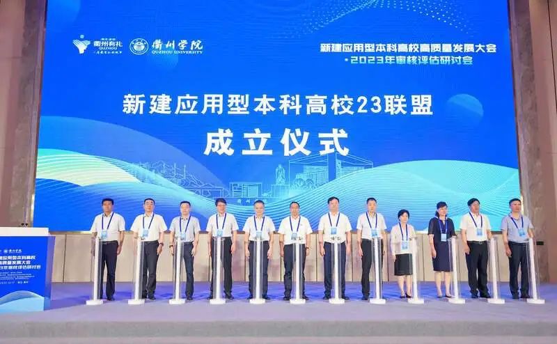 7月15日-17日,新建应用型本科高校高质量发展大会在浙江衢州学院举行,大会主题是“以本科教育教学审核评估为抓手,全面提高新时代立德树人成效”,来自27个省(市、自治区)近100所高校、400余位学者专家参会。会上举行了“新建应用型本科高校23联盟”成立仪式和衢州高端装备产业创新研究院成立揭牌仪式。