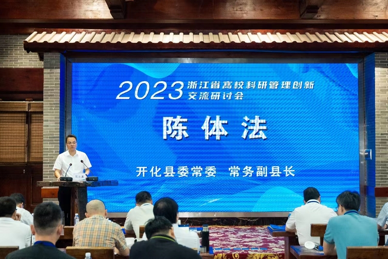 7月28日至30日,2023年度浙江省高校科研管理创新交流研讨会在衢州市开化县举办。本次研讨会由浙江省高等教育学会高校科研管理分会主办,衢州学院、开化县科技创新服务中心和衢州市智能制造技术与装备研究院承办。会议以“加强有组织科研,创新驱动乡村振兴;创新机制体制改革,深化校地企三方合作”为主题,来自全省36所高校的90余名科研管理部门负责人参会。