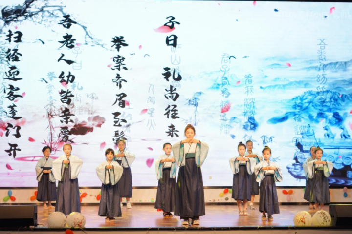 《巍巍华夏,盛鉴国学》《爱的华尔兹》《是妈妈也是女儿》、万华镜、传承之笔、环保驻心间……,从国学课堂、中国传统文化、环境保护,到中国五十六个民族特色文化的讲述,把课堂所学编织成引人入胜的故事情境,大家都为师生淋漓尽致的表演鼓掌喝彩。