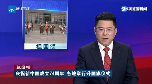 2023年10月1日《中国蓝新闻》:祖国颂 庆祝新中国成立74周年 各地举行升国旗仪式