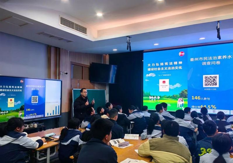 来自衢州市实验学校教育集团菱湖校区初中部的张家俊老师以“学法共建 法治衢州”普法宣传方案分享会形式展开课程,同学们分享了鲜活的案例、精美的图片,共同学习了《善用法律》一课。以典型案例引导学生面对违法犯罪要善于斗争,积极弘扬社会主义法治精神,努力成为社会主义法治的自觉遵守者和坚定捍卫者。