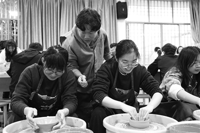 为了更好地弘扬传承和保护衢州地方非遗文化,衢州学院创业学院(工程实训中心)以当地非遗文化为载体开展教育教学改革,深入开展“非遗驻校·三育融通”工作,开设了由非遗传承人授课的“婺州窑衢州白瓷设计与创作”“衢州非遗竹编技艺实训”“非遗文化——蛋雕艺术实践”等课程。图为学生在上“婺州窑衢州白瓷设计与创作”课。