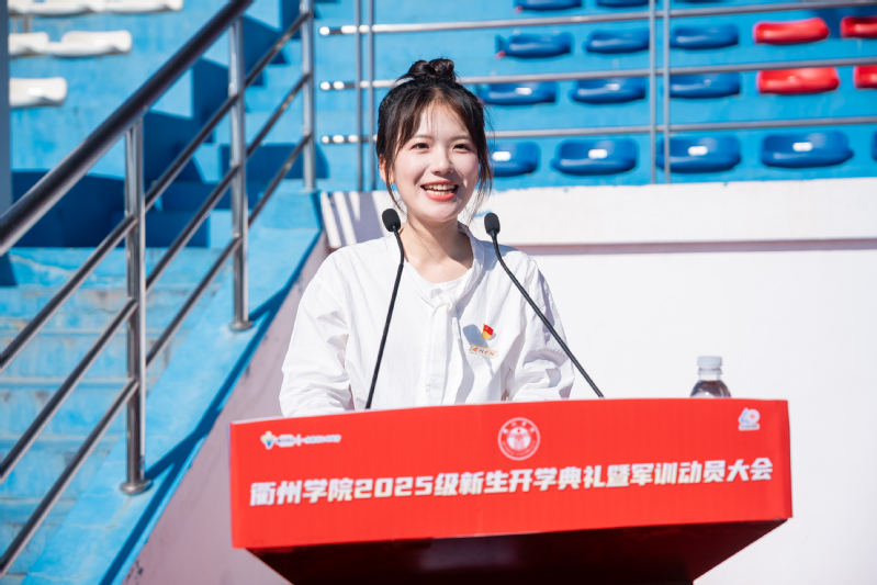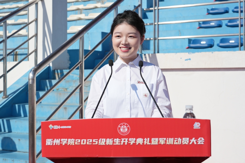 “衢院会是你发光发热的广阔舞台,更会是你遇见更好自己的成长沃土。”“从湖南株洲跨越700公里,如愿成为衢州学院首届体能训练专业本科生,我心中充满喜悦与期待。”“曾经,我以一名军人的方式,守护脚下的土地;如今,我重返课堂,用知识和技术重新武装自己。”“我们努力学习专业知识,希望深入了解灿烂的中华文化,体验‘南孔圣地’衢州的深厚历史底蕴。”“愿我们将个人的学术追求熔铸于时代发展的洪流,成长为有温度、有深度、更有大格局的求索者。”老生代表徐博萌、新生代表陈子航、退伍军人代表史马三杉、国际学历生代表伊拉、首届硕士研究生代表李心悦相继发言,真挚分享他们的求学心声与成长展望。