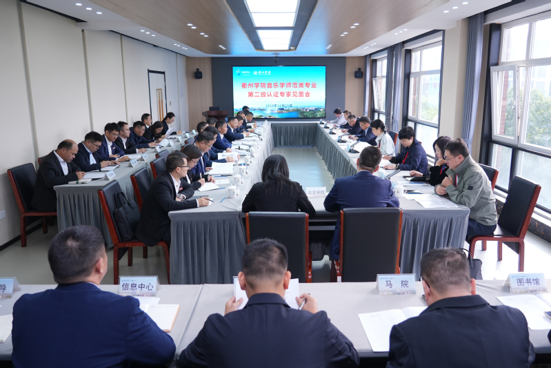 10月28日上午,学校召开音乐学师范类专业第二级认证专家见面会。以浙江外国语学院副校长、教授毛振华为组长的专家组一行,浙江省教育考试院研究室副主任林瑞玉,市教育局党委委员翁胜华,校领导邓崴、郑友取、吴耀光、江爱民、郑文山、陈烈荣、章剑锋、童献纲,学校相关职能部门及二级学院负责人等参加会议。