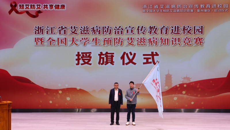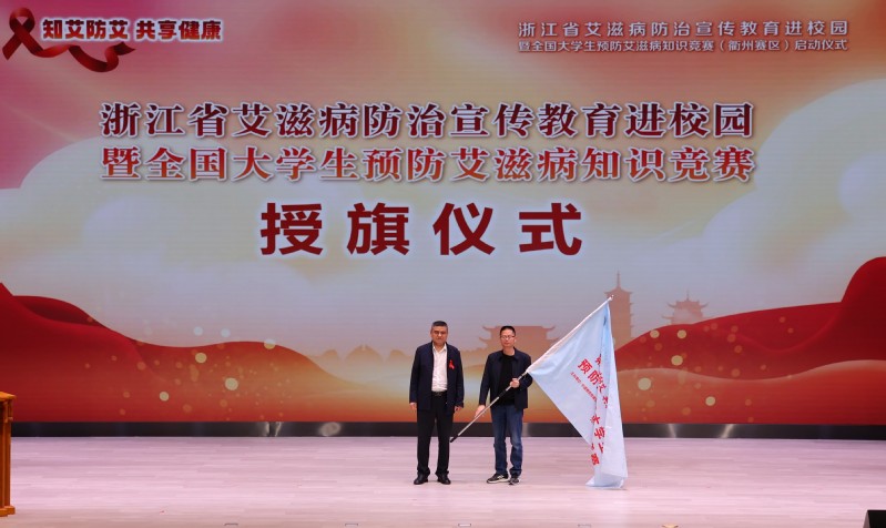 衢州市疾病预防控制局局长陈洪雨分别向衢州学院与衢州职业技术学院传递了全国大学生防艾知识竞赛(浙江赛区)旗帜。他表示,校园是艾滋病防治宣传教育的关键阵地,广大青年学子要主动学习,掌握科学防艾知识;要洁身自爱,筑牢思想行为防线;要关爱他人,消除社会排斥歧视,以实际行动筑牢抵御艾滋病的青春防线。