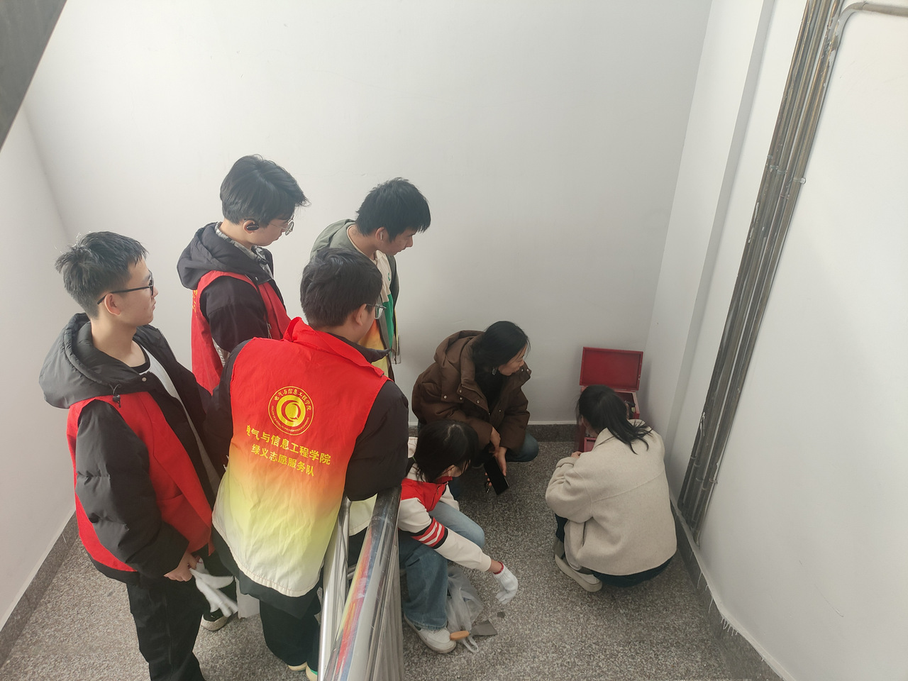 活动中,身着红马甲的志愿者们两两一组,分工明确。在小区楼道内,他们化身“安全巡检员”,逐栋逐单元对灭火器进行“体检”——查看压力指针是否在绿色有效区域、核对登记卡片信息是否规范完整,对发现的压力不足或过期失效的灭火器逐一记录在案,为社区后续统一更换提供精准依据。面对楼道宣传栏亚克力板内顽固的“牛皮癣”小广告,志愿者们手持专用清洁铲、铁丝钩,耐心细致地清理,让公共空间重现整洁。