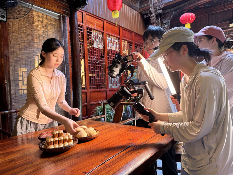 浙江外国语学院团队专注于将杜泽深厚的文化“翻译”并传播到更广阔的世界去。他们摒弃宏大的历史叙事,聚焦空心桂花饼背后的婚嫁习俗、打铁铺里呼应农时的节奏声、铜山源水库建设中的集体记忆等贴近百姓生活的微小瞬间。他们的作品以留学生视角切入,通过“发现、好奇、共鸣”的情感曲线,展现主人公跨越文化隔阂,感知中国乡村的温度与韧性的过程。作品在多个平台传播,点击量达到数万次,将杜泽的美传播到世界的各个角落。