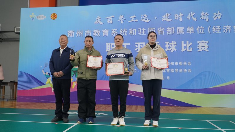 12 月 14 日,2025年衢州市教育系统和驻衢省部署单位(经济实体)职工羽毛球赛在龙游雅琼运动馆落幕。衢州学院联队历经两天角逐,夺得市直学校(单位)头名,并于三组头名排位赛中勇获第二,尽显我校教职工昂扬风貌。