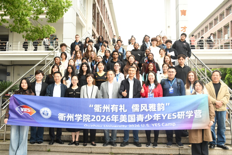 4月13日上午,我校2026年美国青年使者交流学习计划(Young Envoys Scholarship,简称YES项目)首期研学营开营仪式在学校举行。本期项目以“衢州有礼,儒风雅韵”为主题,由衢州学院主办,衢州市侨联、柯城区委宣传部协办。来自美国康涅狄格国际文凭学院和东哈特福德高中的25名师生与我校师生代表齐聚一堂,将共同开启为期8天的中国文化深度体验之旅。